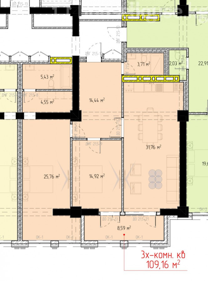 3-комн. кв., 109 м2