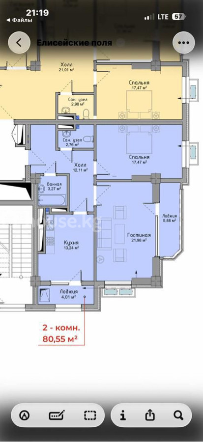 Продается 2-х комнатная квартира 📍Адрес: мкр.Асанбай 🏗️Застройщик: Авангард 🏢 Жилой Комплекс: Елисейские Поля 🏛️Серия: Элитка 🏬Этаж/Этажность: 4/12 📐Площадь: 80М2 💧Коммуникации: Центральные ♨️Отопление: Газовое 🚪Состояние квартиры: ПСО 🚽Сан узел: Раздельный 📃Документы: ДДУ Дополнительно: Материал стен: Кирпич 💵 Цена: 158000$
