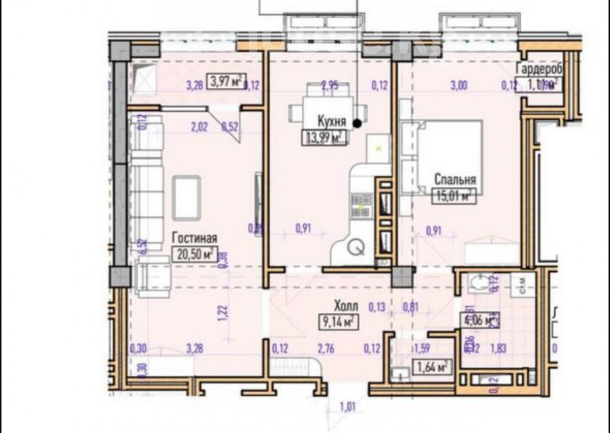 2-комн. кв., 70 м2, 8 этаж из 12