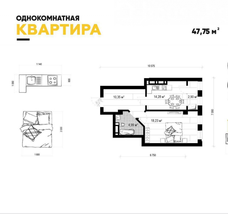 Продажа, 1-комн. кв., элитка, Бишкек, Магистраль