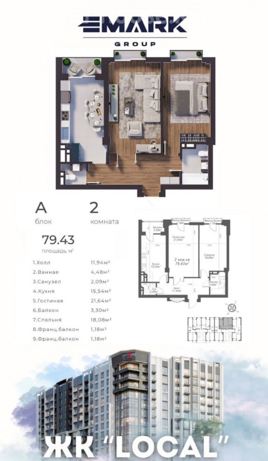 ПРОДАЮ 2-Х КОМНАТНУЮ КВАРТИРУ В ПРЕМИУМ ЖК «LOCAL» ПСО: КОНЕЦ 2025 ГОДА ЛОКАЦИЯ: ЖУКЕЕВА-ПУДОВКИНА / ААЛЫ ТОКОМБАЕВА ЭКОЛОГИЧЕСКИ ЧИСТЫЙ РАЙОН ПРЕМИУМ НАПОЛНЕНИЕ: УМНЫЙ ДОМ, FACE ID ОХРАНА И ВИДЕОНАБЛЮДЕНИЕ ЛИФТЫ KONE ПОТОЛКИ 3,3 М 5-КАМЕРНЫЕ АЛЮМИНИЕВЫЕ ОКНА ПОДЗЕМНЫЙ И ГОСТЕВОЙ ПАРКИНГ АВТОНОМНАЯ КОТЕЛЬНАЯ РЯДОМ ПАРКИ, ШКОЛА ГАЗПРОМ, ГИПЕРМАРКЕТ «ГЛОБУС» ЗАСТРОЙЩИК: ЭМАРК ГРУПП ЭТАЖНОСТЬ: 16 ЦЕНА: 1550 $ / М² ID: 77414