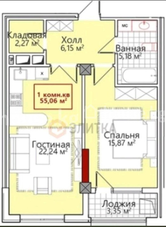 55 м2