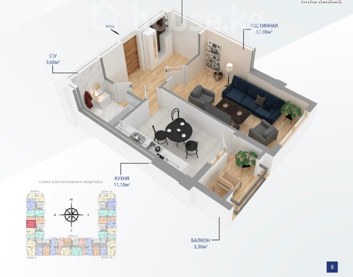 Город Ош❗️1-комнатная квартира в ЖК «Визион Резиденс» Район с развитой инфраструктурой: магазины, остановки, всё необходимое в шаговой доступности. Дом новый, современный, с ухоженной территорией. ✅ Большая благоустроенная детская площадка-безопасная, современное покрытие, отличное место для детей и отдыха. ✅ Парковка Квартира с удобной планировкой, все коммуникации подключены. ПСО позволяет сделать ремонт полностью под себя, либо под сдачу в аренду Торг на месте!