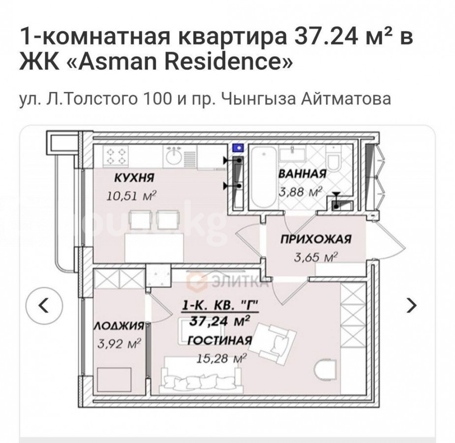 Продается 1 ком. кв. 36м2 в ЖК Асман резидентс СК Кап строй ID: 72240 Центр города, пересечение Л.Толстого/Белинского на 10/12 этаже Блок Б Окна смотрят на Ботсад Сдача под ПСО в марте 2026года Центральные коммуникации Центральное отопление Бронированные двери Не угловая Закрытая территория Лифт Парковочные места Охрана Развитая инфраструктура Отличный вариант для проживания или инвестиций Цена: 54000$ Каныкей 0704993599 Кыргыз Недвижимость ID: 72240