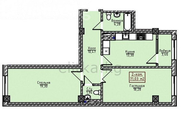 2-комн. кв., 71 м2