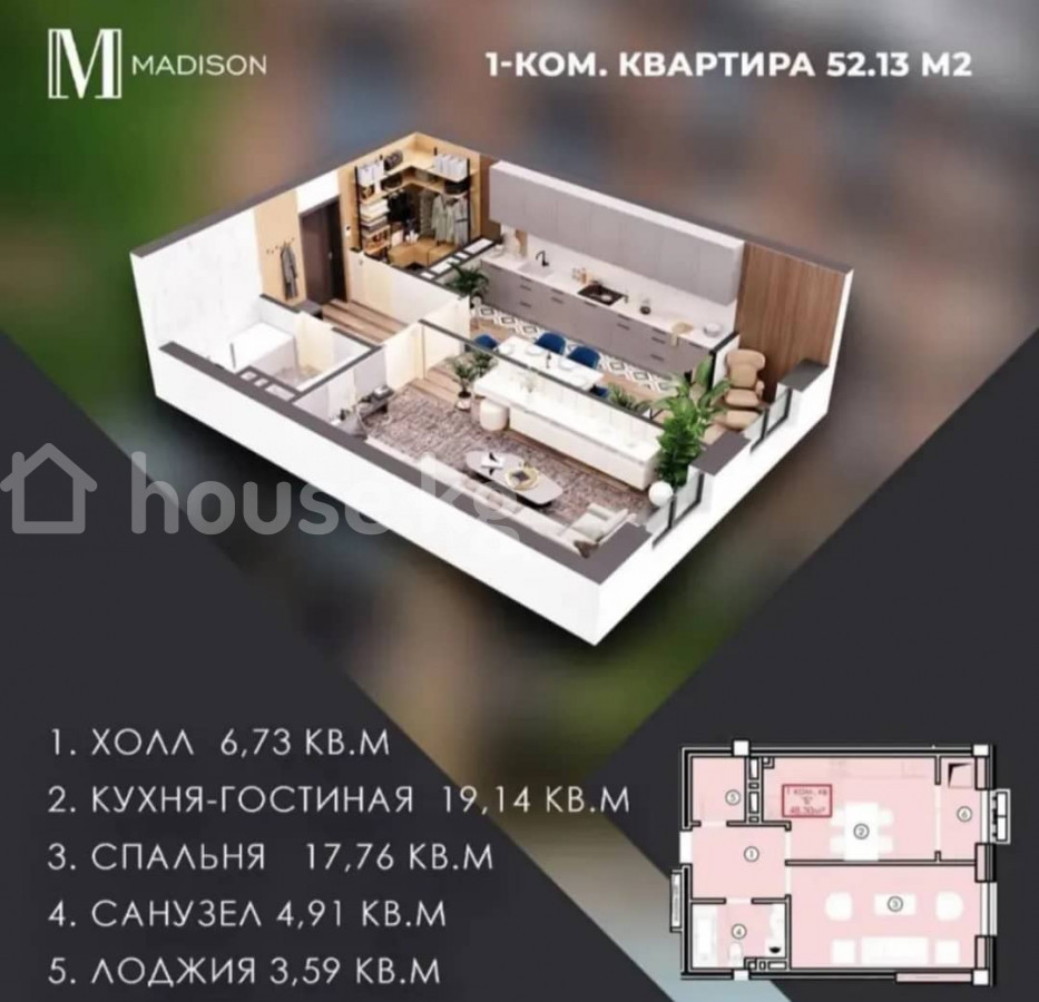 Продается 1- комнатная квартира 📍Адрес:Боконбаева- Шевченко 🏗Застройщик: Cap Stroy 🏢 Жилой Комплекс: Madison 🏛Серия: Элитка 🏬Этаж/Этажность: 8/16 📐Площадь: 52м2 💧Коммуникации: Центральные ♨Отопление:Центральное 🚪Состояние квартиры: ПСО февраль 2026 🚽Сан узел: Совмещённый 📃Документы: ДДУ, Красная книга 💵 Цена: 77,000$ ID0020 Адилет