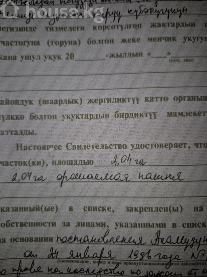 🏡 Продаю земельный участок — 3 гектара (300 соток) 📍 Местоположение: с. Чокморов (Чон-Таш), недалеко от г. Бишкек 📞 Телефон: 0222 88 22 73 📌 Основная информация: Площадь участка: 3 гектара (300 соток) Назначение: Для сельского хозяйства (орощаемое) Тип сделки: Наличный расчет Документы: Договор купли-продажи Собственник: Продаю без посредников 💧 Преимущества участка: Ровный, орошаемый участок С поливом проблем нет Удобный подъезд, рядом с Бишкеком Отлично подходит для сельхозпроизводства, теплиц, сада и т.д. 💰 Цена: 40 000 $ за гектар 📉 Возможен торг