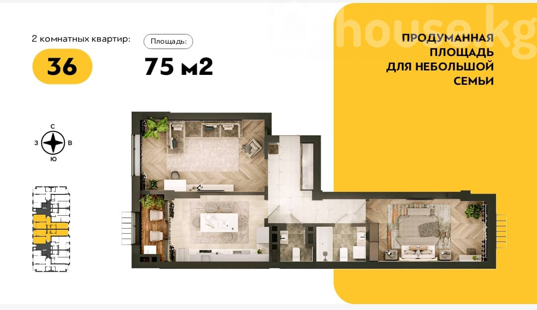 2-room apartment, 75 sq. m