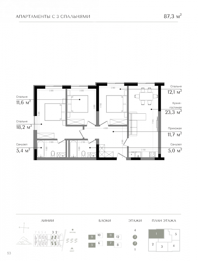 3-room apartment, 87.3 sq. m