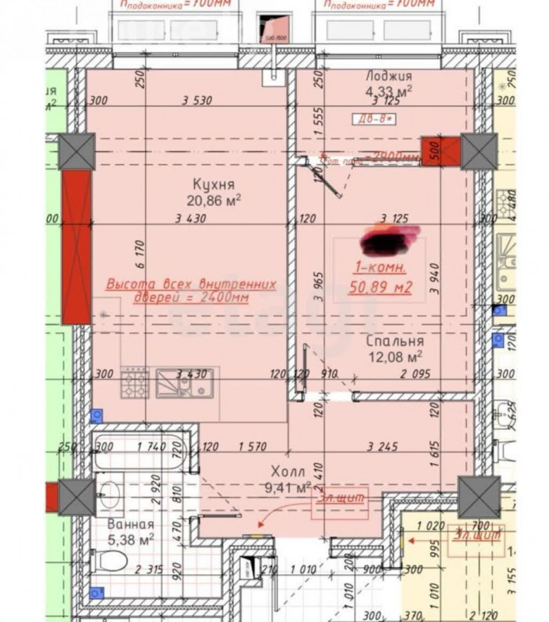 50.89 sq. m, living: 12.08 sq. m