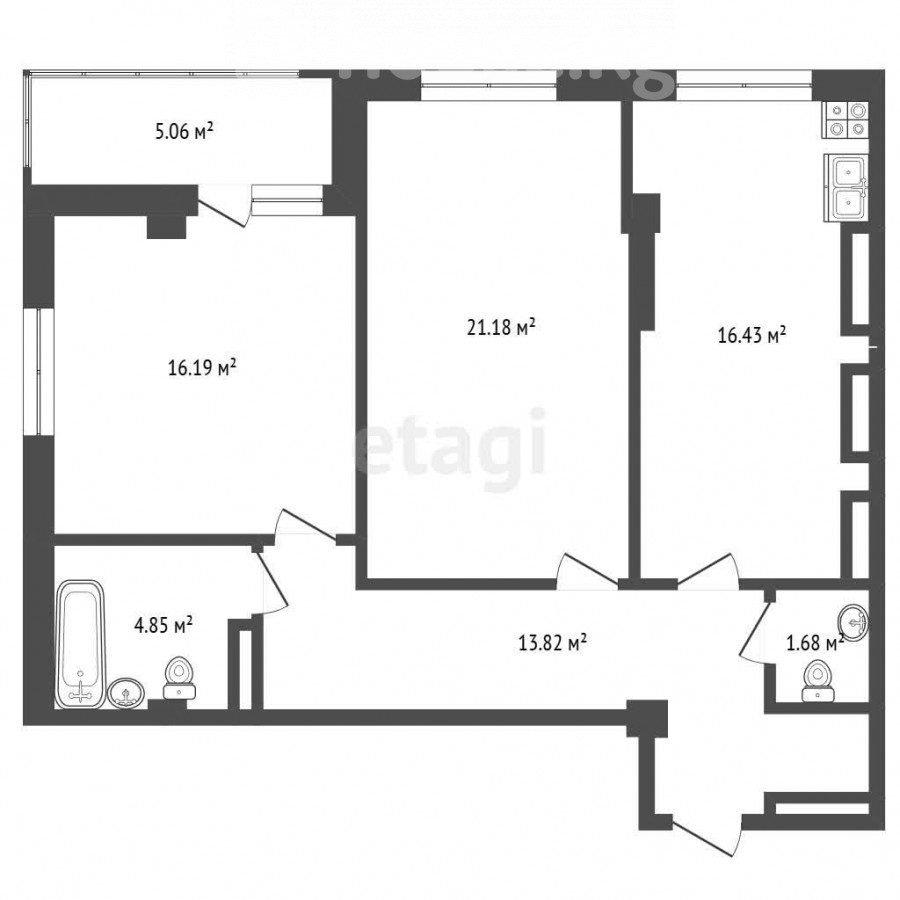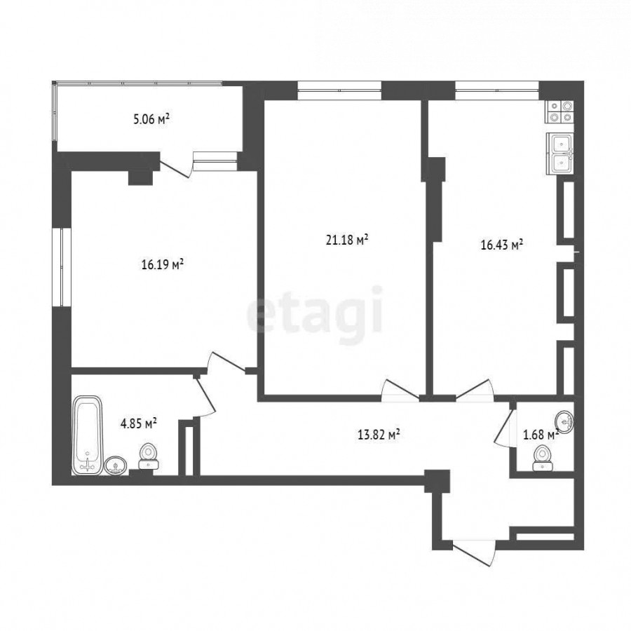 2-room apartment, 79 sq. m