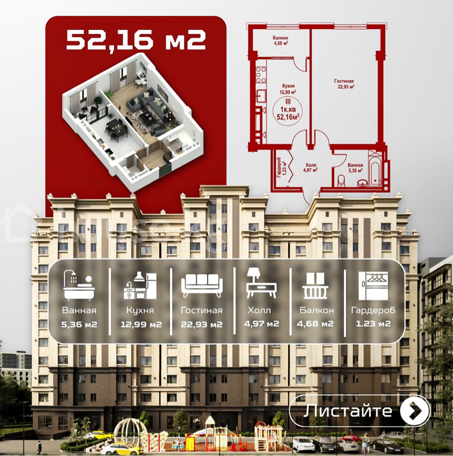 Продается евродвушка с площадью 53 кв м.Идеальный вариант для инвестиции,сдачи в аренду или личного комфортного проживания. Преимущества квартиры: • Удобная планировка, комнаты правильной формы • Большие окна — много естественного света • Просторная кухня • Высокие потолки • Тёплая, не угловая Рядом больницы,садики,магазины!!! Документы полностью готовы к сделке.