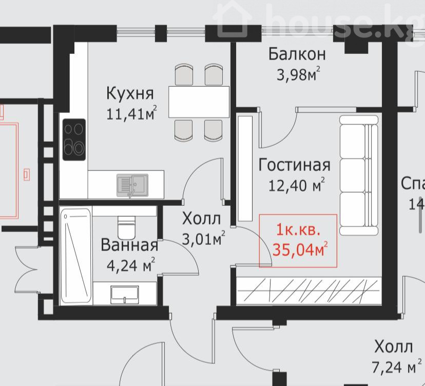 1-бөлм. бат., 35 м2