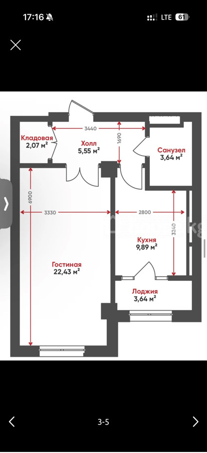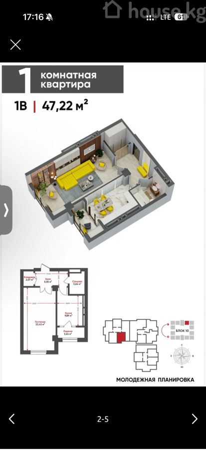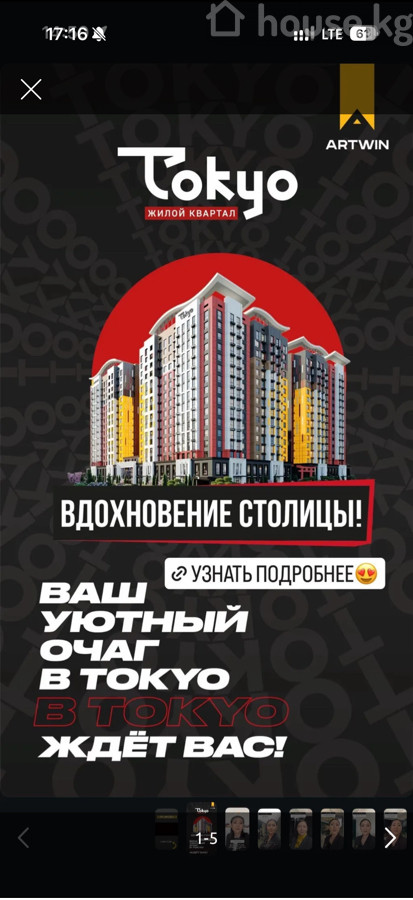 $ 62 000 $ 1 377/м2 5 431 200 сом 120 625 сом/м2