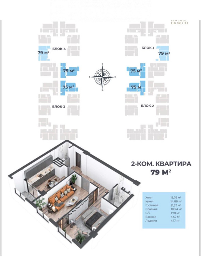 2-бөлм. бат., 79 м2