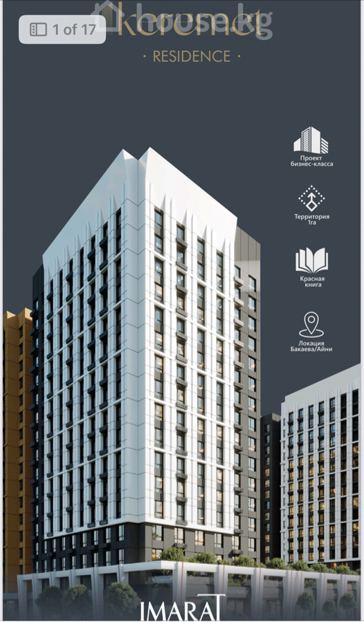 Продается 2-комнатная квартира 79 м² в KEREMET Residence от надежной строительной компании «Имарат Курулуш». Сдача под ПСО 3-квартал 2026 года. Планировка и метраж: - Общая площадь: 79 м² - Холл — 13,76 м² - Кухня — 14,88 м² (отдельная, с выходом на лоджию) - Гостиная — 21,52 м² - Спальня — 18,54 м² - С/У — 1,78 м² - Ванная — 4,52 м² - Лоджия — 4,17 м² Особенности планировки: - Просторная гостиная и изолированная кухня - Уютная спальня с местом под гардероб - Лоджия для отдыха/кабинета О комплексе: - Проект бизнес‑класса - Территория 1 га, внутренний закрытый двор без машин - Комплекс из 4 блоков - Локация: пересечение Бакаева / Айни - Правовой статус: Красная книга - Собственная управляющая компания - Охрана 24/7 - Детские игровые площадки - Зарядные станции для электромобилей - Подземный паркинг, благоустроенные пешеходные зоны, озеленение двора KEREMET Residence — современный жилой комплекс с продуманной инфраструктурой и высокой степенью безопасности. Квартира 79 м² сочетает просторные комнаты, отдельную кухню и лоджию, что удобно для семьи и удаленной работы.