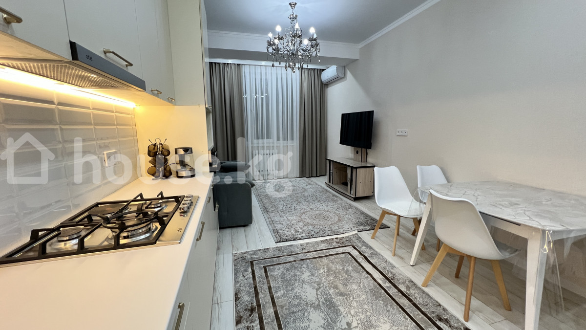 пластик терезе, ашкана-студия, жаңы сантехника, кондиционер, буручтуу эмес, өзүнчө бөлмөрөр, кладовка, тынч короо