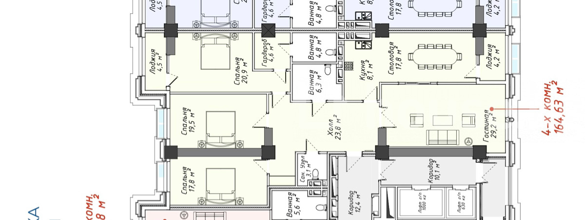 4-бөлм. бат., 164 м2