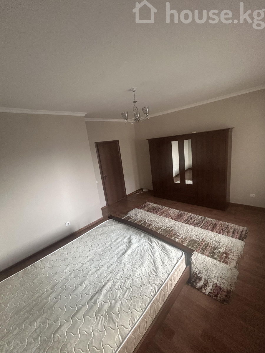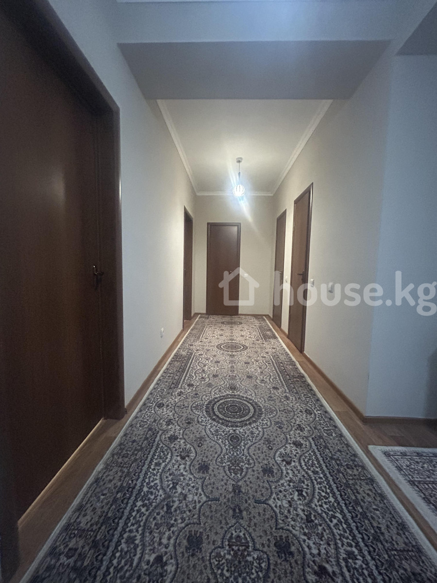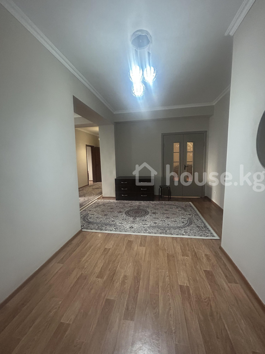 Сдаётся просторная светлая квартира 150 кв.м. с современной отделкой и базовой мебелью в районе Орозбеков- Боконбаев. Балконы изолированы и в комнатах очень тепло и тихо. - Большая гостиная с тремя окнами, потолочным светильником и двухцветной акцентной стеной. На полу — ламинат; установлены плинтуса и потолочный карниз. В комнате есть: прямой диван, журнальный стол, ковёр с цветочным рисунком, тумба под ТВ/хранение, картина, гладильная доска. - Отдельная зона с пустой стеной — удобно под рабочее место, шкаф или домашний кинотеатр. - Два санузла, облицованные светлой плиткой: унитазы компактного типа, подвесная тумба с раковиной, зеркало‑шкаф; полотенцедержатели, радиатор отопления, сантехнические ревизионные люки. - Окна ПВХ, межкомнатные двери из тёплого дерева, розетки и выключатели установлены, центральное отопление (радиаторы у окон). - Чистый подъездный стиль, нейтральные тона, готово к расстановке мебели и техники под ваши задачи.
