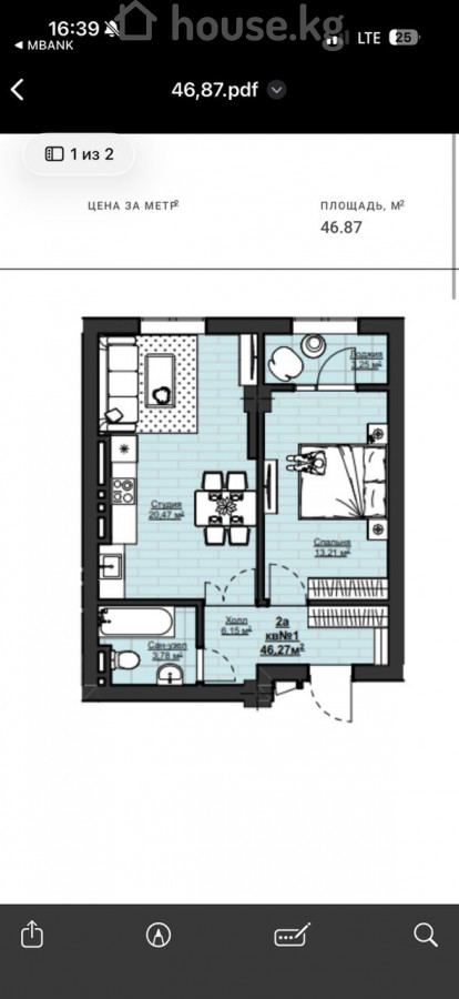 1-бөлм. бат., 46.87 м2