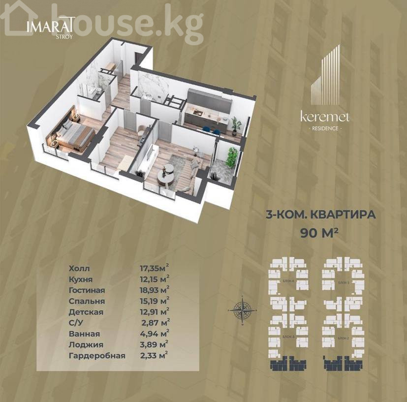 3-комнатная квартира в ЖК Keremet Residence (бизнес-класс) Локация: ул. Бакаева / ул. Айни, рядом со сквером «Аллея Журналистов». Застройщик: Имарат Строй. Блок 3, этаж 15 из 17. Окна на парк и на ул. Островского. Красная книга. Тихий центр. Газовое отопление. Инфраструктура комплекса: - Озеленённый двор - Охраняемая территория без машин - Собственная управляющая компания - Современная детская площадка - Фитнес-клуб - Дошкольный образовательный центр - Зарядные станции для электромобилей - Консьерж-сервис В шаговой доступности: Аллея Журналистов, Asia Mall, кинотеатр «Манас», университеты БГУ, «Манас», КГТУ и др. Сдача ПСО: 4 квартал 2026 года. Цена: 1250 $ за м² #недвижимостьбишкек #квартирабишкек #квартирывбишкеке #KeremetResidence #ИмаратСтрой #ПСО #Бакаева #Айни #АллеяЖурналистов