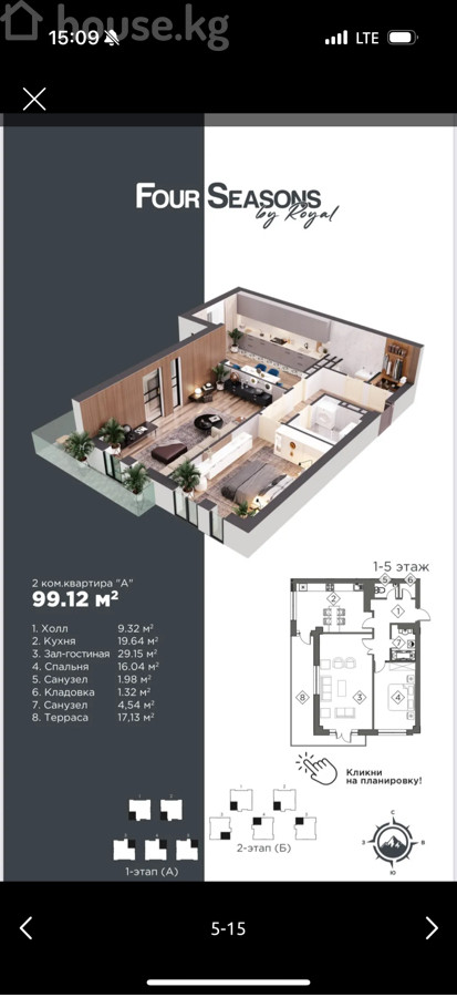 99.12 м2, ашкана: 19.64 м2