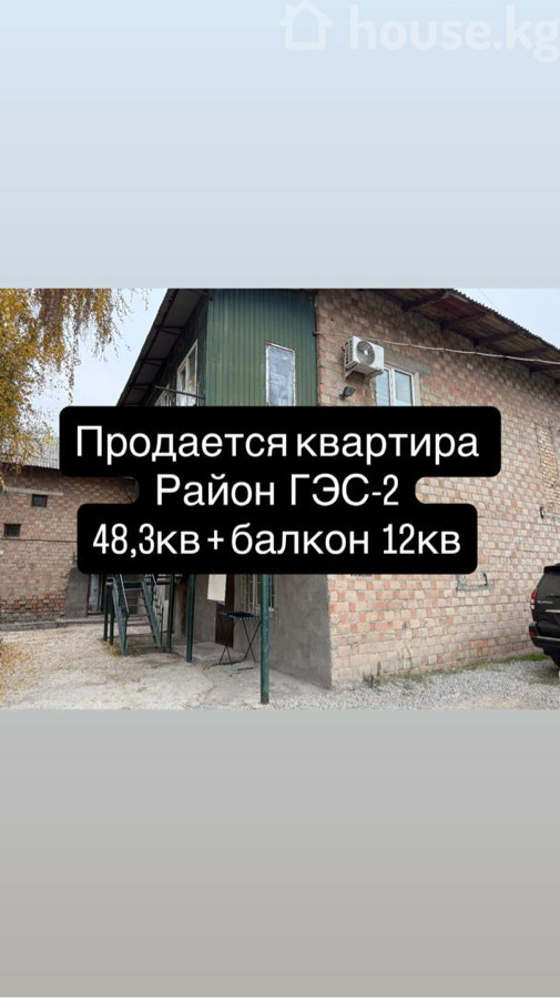 Продается 1-комнатная квартира в районе Гэс -2 (село Аламудун) • Площадь 48,3 кв.м + 12 кв.м утепленный балкон • Кухня просторная, зал большой, дополнительно есть еще одна комнатка( можно под детскую ,кабинет или кладовку) • Мебель и частично техника —остаётся • Кирпичный дом • Все документы в порядке • В доме предусмотрено электрическое и печное отопление. • Отличное расположение: — Рядом школы и детские сады, маркеты — В пешей доступности от улицы Алматинской. — Удобная транспортная развязка — До остановки 2 мин ЦЕНА 49 000 $ Разумный торг при просмотре Звоните по номеру w/a 0709077377
