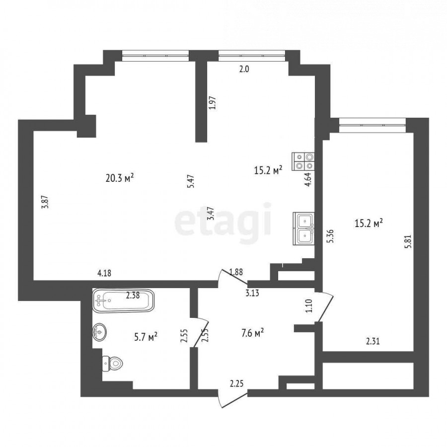 2-бөлм. бат., 64 м2