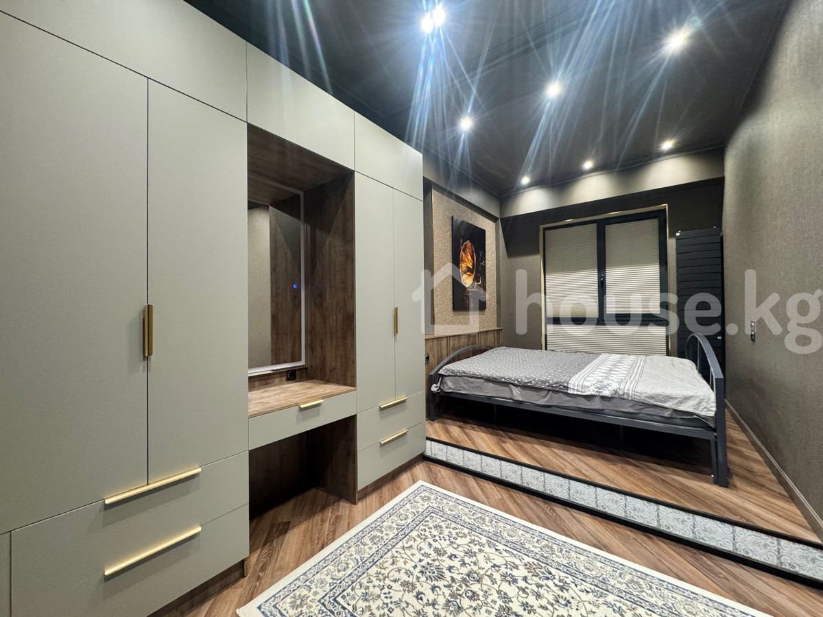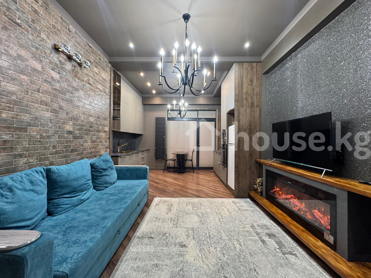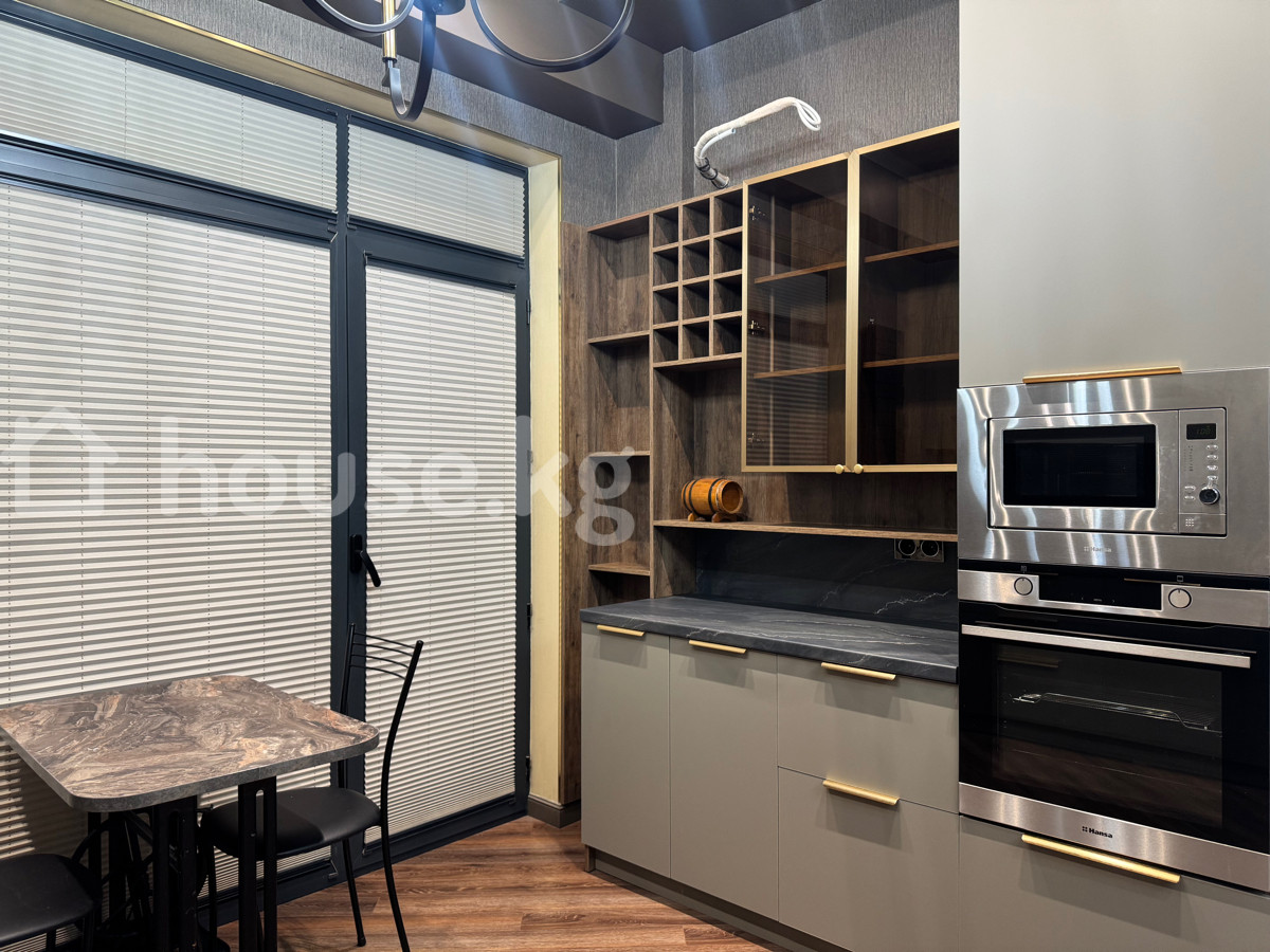 Сдаётся новая 2‑комнатная студийная квартира в районе ТРЦ «Ала‑Арча». Планировка и интерьер: - Современный дизайн, тёплые тона, точечное и люстровое освещение. - Просторная кухня‑гостиная с обеденным столом и диваном. - Отдельная спальня на подиуме с двуспальной кроватью, большим встроенным шкафом, туалетным/рабочим столиком и зеркалом. Оснащение: - Полноценный кухонный гарнитур, много систем хранения, винная секция. - Техника: духовой шкаф, варочная поверхность, микроволновая печь, холодильник. - Санузел совмещённый (на фото не показан), стиральная машина — по месту предусмотрена ниша. - Жалюзи/рулонные шторы на окнах, радиаторы‑дизайнеры, розетки и освещение продуманы по зонам. - Напольное покрытие — ламинат; ковры в гостиной и спальне. Особенности дома и локации: - Современный 14‑этажный дом, квартира на 3‑м этаже. - Тихий квартал рядом с ТРЦ «Ала‑Арча»: магазины, кафе, кино, удобная транспортная развязка. Идеальный вариант для проживания в стильном и функциональном пространстве рядом с ключевой городской инфраструктурой.