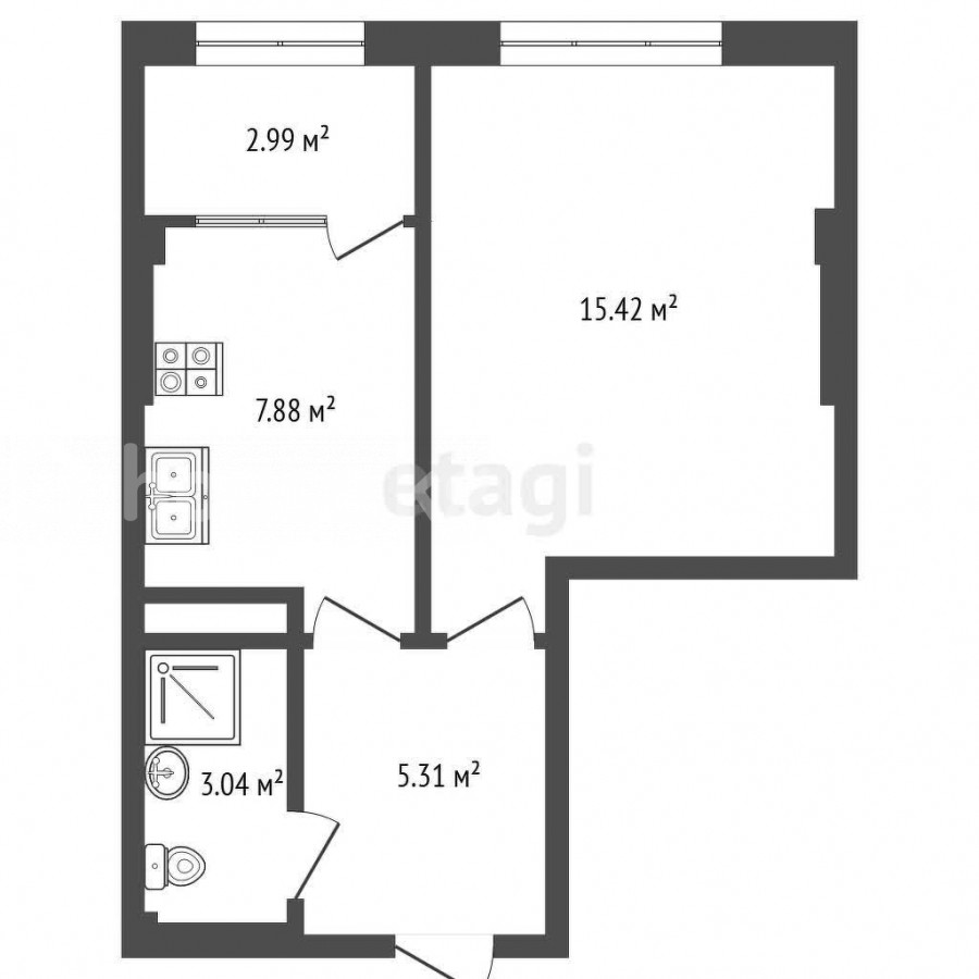 1-бөлм. бат., 34.64 м2