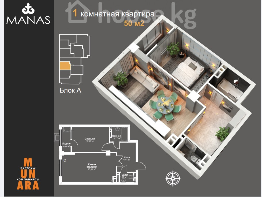 Срочная продажа 1кв ПСО район Кок Жар по улице Арашан 10 СК Мунара Строй ЖК Манас Этаж 10/12 Площадь 50м2 Сдача ПСО 1 квартал 2026 года Цена за м2 1020$ 0552550555