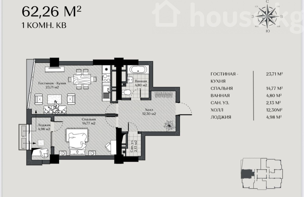 🌅Продается 1-к. Квартира в ЖК «Gravity» от застройщика «Н Групп» 🏗️ !!! Квартира находится на 9-этаже 26-этажного дома, общей квадратурой 62 м📏 ! Сдача по ПСО 3-квартал 2026-года! Документы: ДДУ, проходит гос регистр!!! Единственная 1к квартира на продаже на данный момент! Цена: 1250 $ за м2 Все вопросы по телефону:
