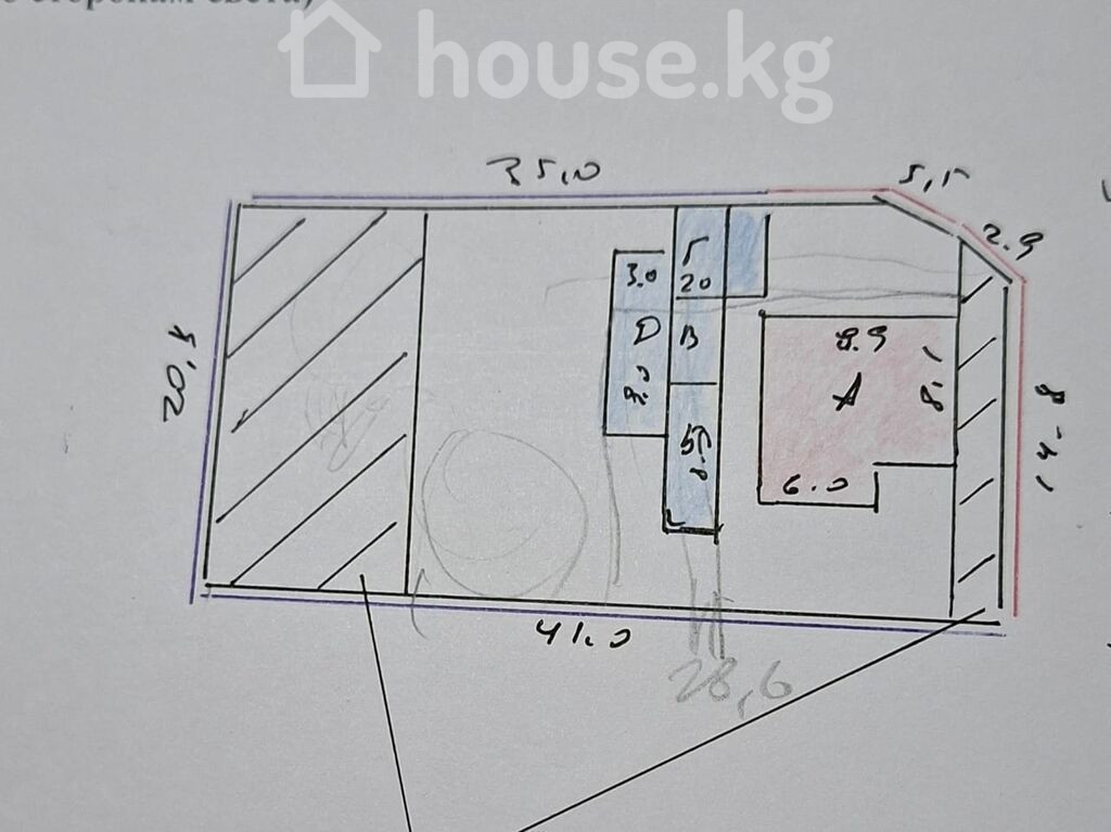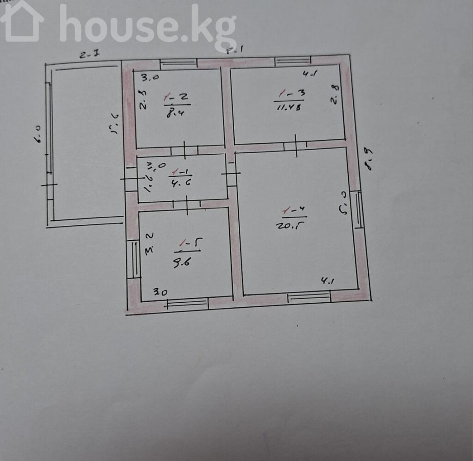 Продается!!! Дом в г. Бишкек( бывшее с. Маевка), из жженного кирпича,S-54,78м2, состоящий из 4 жилых комнат, комнаты с душевой кабиной и санузлом, прихожей. Окна пластиковые. Полы деревянные. Стены обои. Наружные стены декоративная штукатурка. Крыша шифер. На участке есть времянка из двух комнат,со всеми коммуникациями. Отопление дома и времянки водяное т/ т,природным газом( два котла установлены во времянке). Коммуникации: электрисество, природный газ, вода( холодная и горячая). Участок- 6,0 соток.( по юр докум). Ширина участка -17,8 метров. Длина участка -32метров. Цена - 105000$.( 9 187500 сом). Телефон 0506510144 0555600551