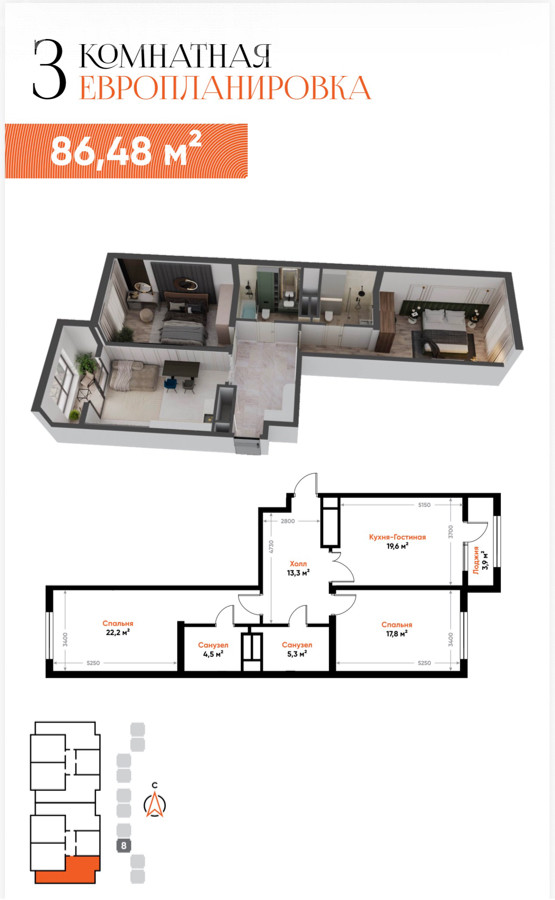 3-бөлм. бат., 86 м2