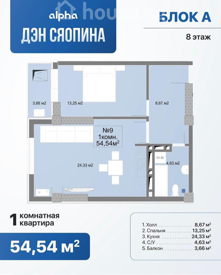 Продается 1 комнатная квартира❗️ Сдача 2026/ 2 квартал✅ 📍Адрес: Ден Сяопина/ Садыгалиева 🏗️Застройщик: «AlphaStroy» 🏢Жилой комплекс: «ЖД Ден Сяопина» 🏛️Серия: Элитка 🏬Этаж/Этажность: 7/9 📐Площадь: 55м2 💧Коммуникации: Центральные ♨️Отопление: Газовое 🚪Состояние квартиры: ПСО 🚽Сан узел: Совмещенный 📃Документы: ДДУ/ оформление через гос регистр 💵Цена: 950$ за м2 торг разумный есть✅