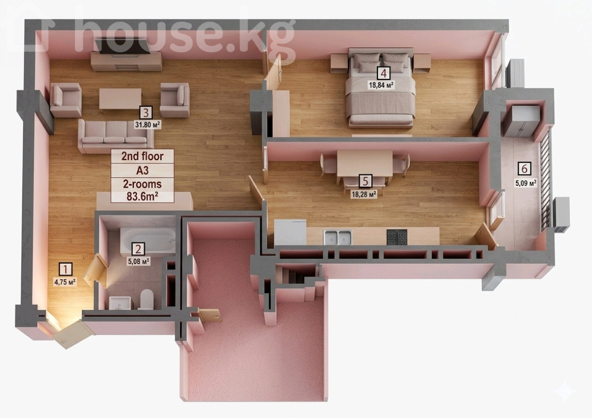 83.6 м2, турак жай: 80 м2, ашкана: 18 м2
