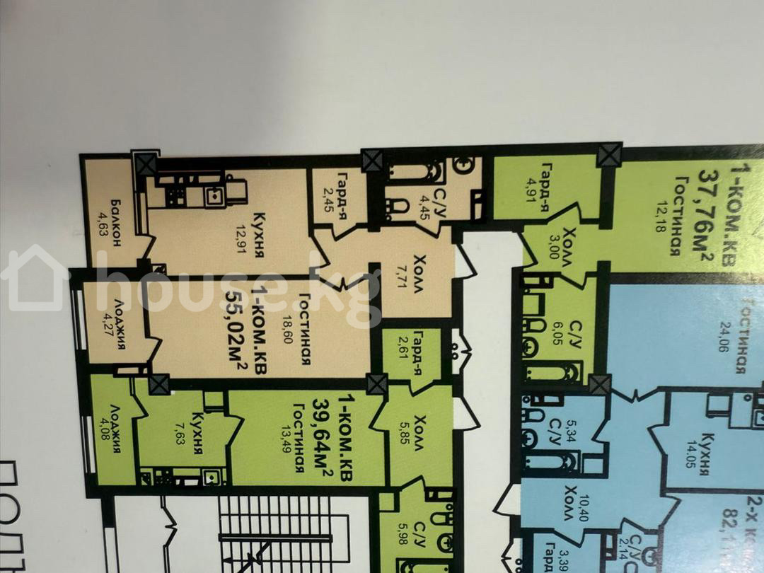 1-бөлм. бат., 55 м2