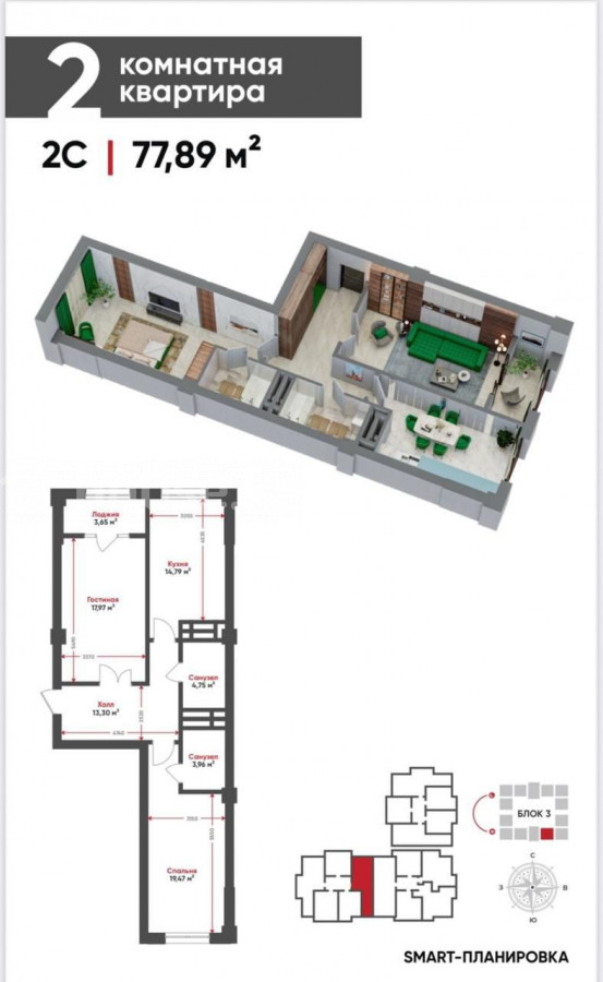 2-бөлм. бат., 77.65 м2