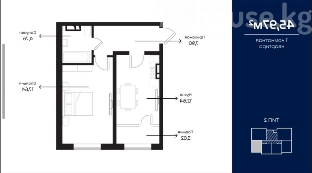 1-бөлм. бат., 46 м2