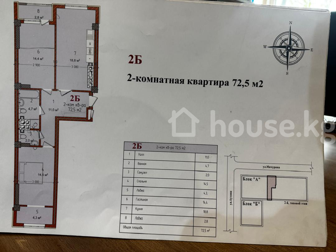 $ 84 750 $ 1 363/м2 7 414 778 сом 119 249 сом/м2