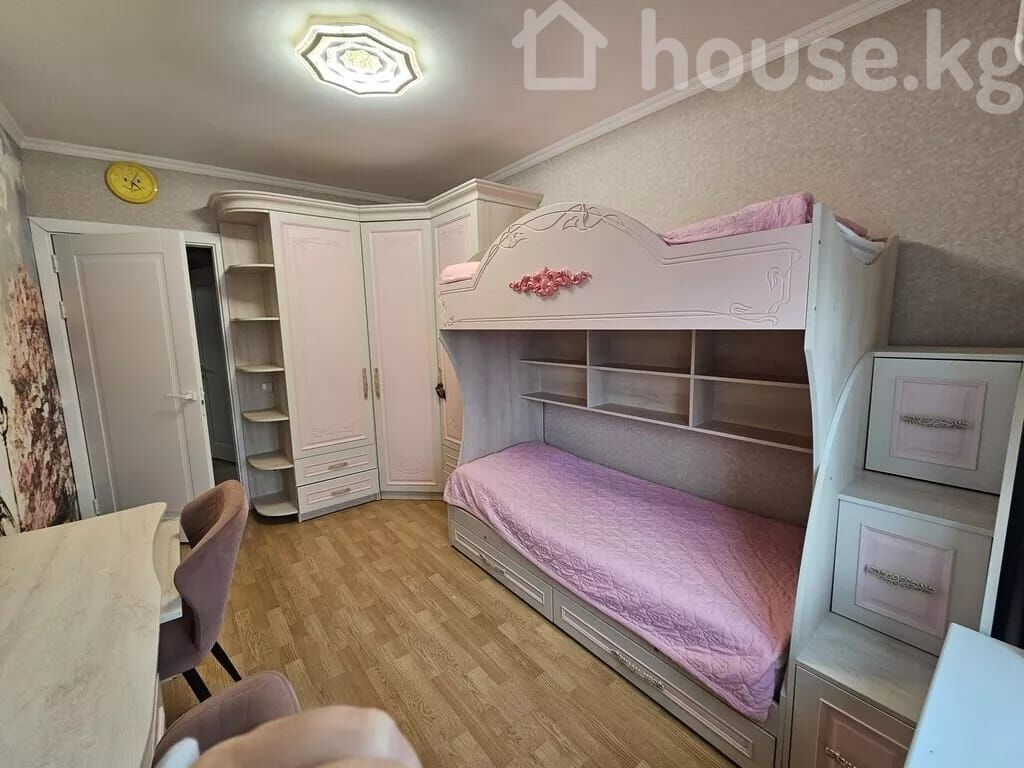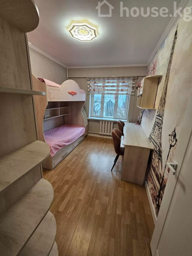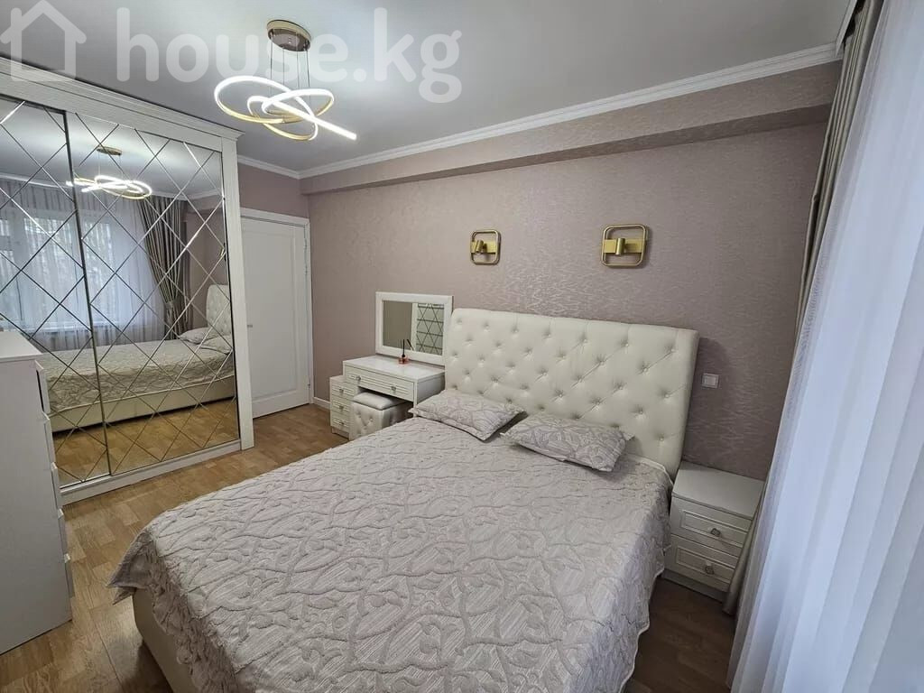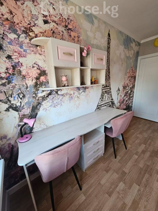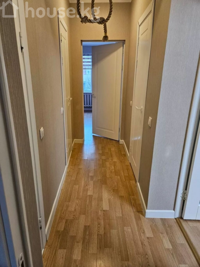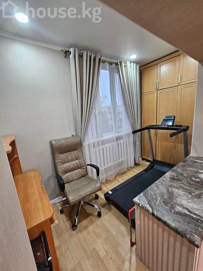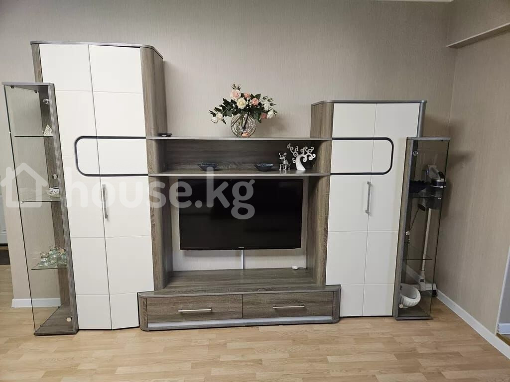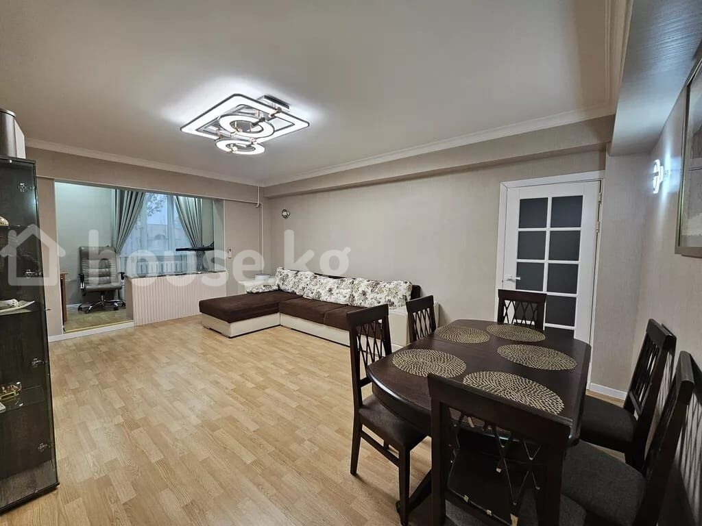 Просторная 3-комнатная квартира с современным интерьером Этаж 5/7 Лифт есть Площадь: 65м2 Дом кирпичный Окна на запад и восток Квартира отличается продуманной планировкой и стильным оформлением, полностью готова для комфортного проживания. Гостиная открытой планировки большая модульная стенка с нишей под ТВ витрины со стеклянными дверцами и встроенной подсветкой подвесная полка обеденная зона на 4–6 персон уютный угловой диван потолочный светильник в современном стиле и настенные бра Отдельный кабинет / дополнительная комната рабочий стол и удобное кресло встроенный платяной шкаф беговая дорожка точечное освещение Кухня в классическом стиле длинная линейная гарнитура с множеством шкафов декоративные фасады с витринами варочная поверхность, вытяжка столешницы под мрамор, фартук с подсветкой обеденный стол с мягкими стульями и элегантной люстрой Отделка и оборудование напольное покрытие: ламинат под дерево окна с плотными портьерами и тюлем ровные потолки с белым карнизом декоративные экраны на радиаторах встроенные и подвесные светильники во всех комнатах Квартира сочетает удобство, функциональность и современный дизайн: предусмотрены места хранения, уютные зоны отдыха, рабочее пространство и полностью оборудованная кухня. Кыргыз Недвижимость ID: 73624