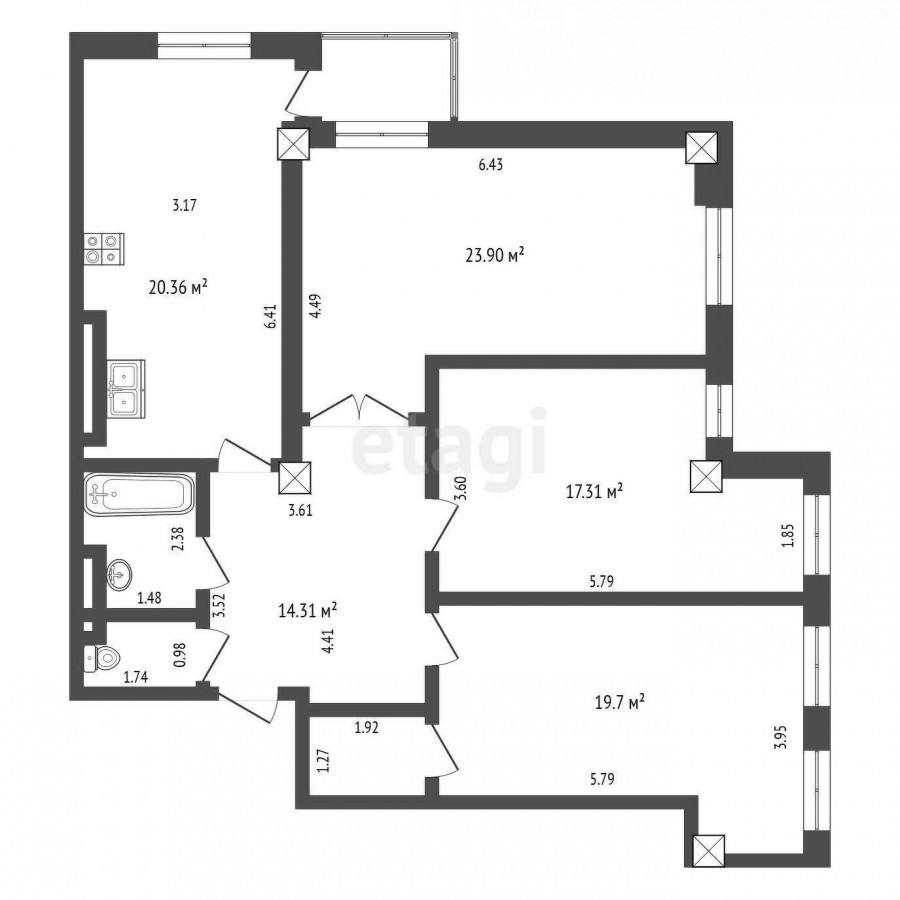 3-комн. кв., 105 м2