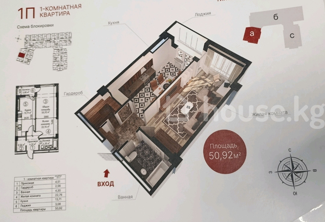 Срочно Продаю 1к 50,92м2 ПСО 10/15 эт 61500$ ЖК Пионер Плюс , Общая площадь: 51,52 м², Дом Сдан, Лифты работают, 40% дом заселён, можете начинать ремонт , цена ниже на 100$ с соседями, не упускай свой шанс купить за дешего! Общая площадь: 51,52 м², Состав помещений: - Прихожая — 4,63 м² - Гардероб — 2,40 m² - Санузел — 4,42 м² - Жилая комната — 22,90 м² - Кухня — 13,68 м² - Лоджия — 3,49 м² Особенности: - Продуманная функциональная планировка с отдельной гардеробной. - Просторная кухня и большая жилая комната правильной формы. - Лоджия с выходом из кухни. - Панорамные окна, хорошая инсоляция. - Дом современного архитектурного решения, закрытый внутренний двор. - Черновая отделка: выполнены стяжка пола, возведены стены, разведена базовая электрика — готово под чистовую отделку и индивидуальный дизайн.