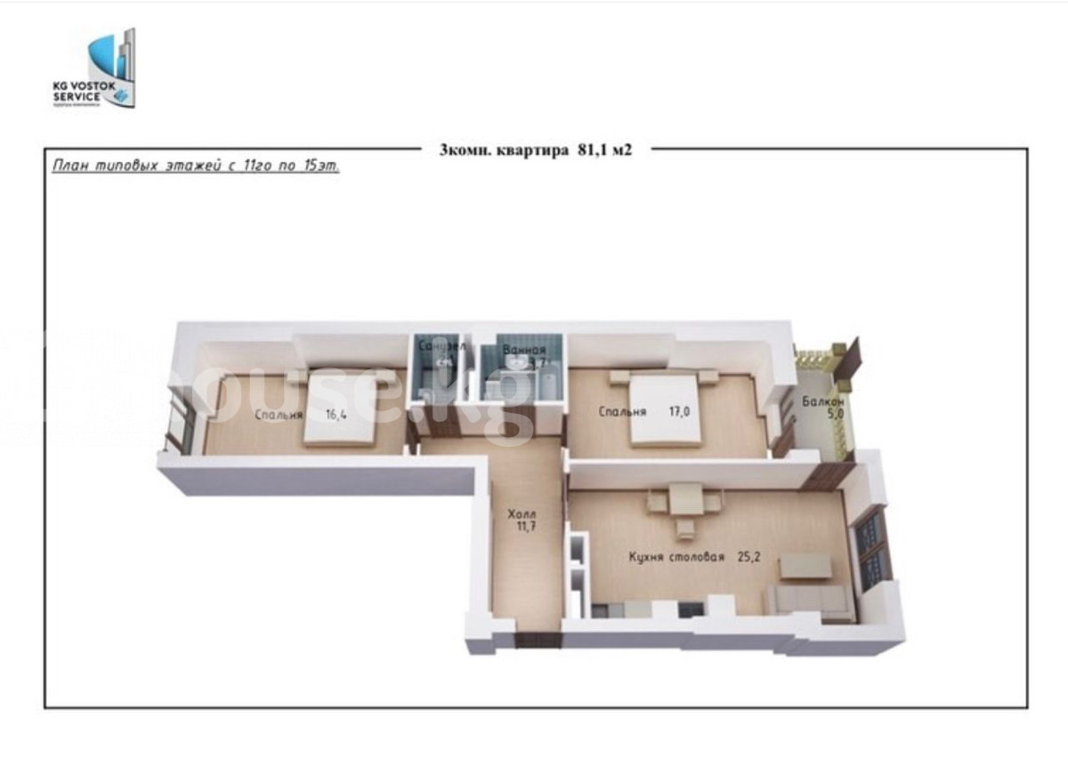 Продаю 3к квартира Студия! Состояние ПСО! ЖД Кубаныч СК Восток Сервис Расположение Фрунзе/М.Гвардия На 12 этаже из 15 Квадратура 81.1 м2 Коммуникации все центральные! Отопление уже дали! Лифт запущен! Все шаговой доступности! Цена: 105,000$ (1295$ за м2) 0559-644-667 Аман