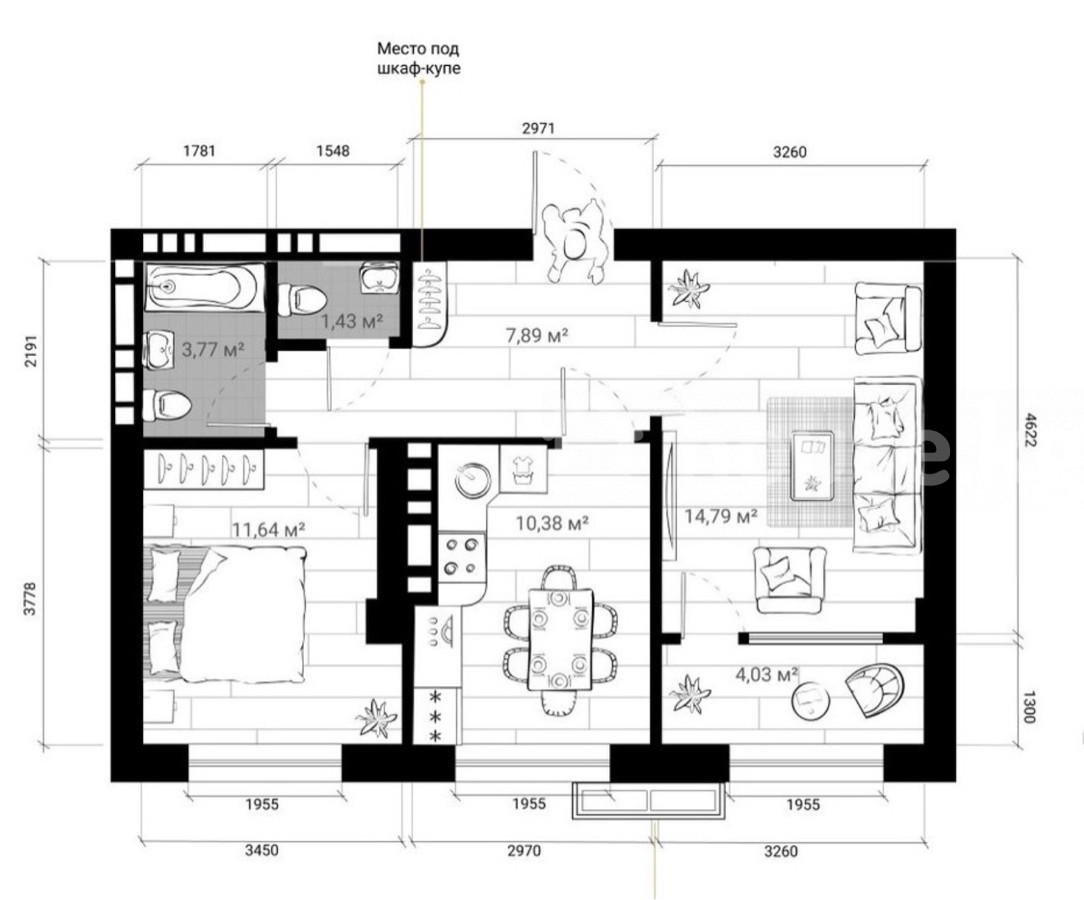 56.64 м2, турак жай: 56.64 м2, ашкана: 11 м2