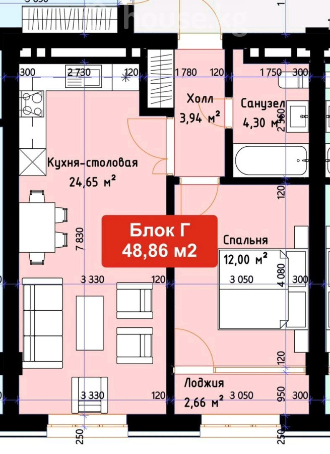 1-бөлм. бат., 49 м2