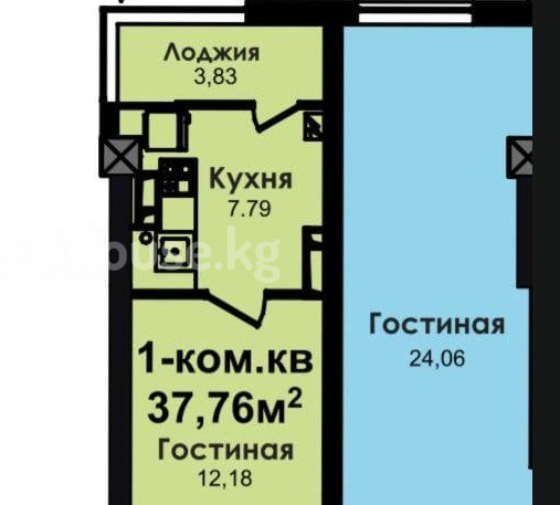 1-бөлм. бат., 38 м2, 9 кабат / 16
