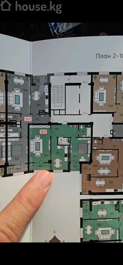 83.4 м2, турак жай: 43 м2, ашкана: 15.5 м2