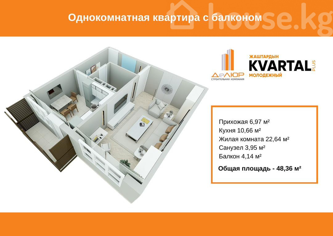 1-бөлм. бат., 48.36 м2
