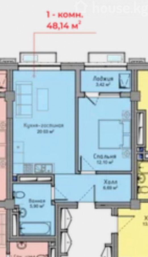 1-бөлм. бат., 48 м2